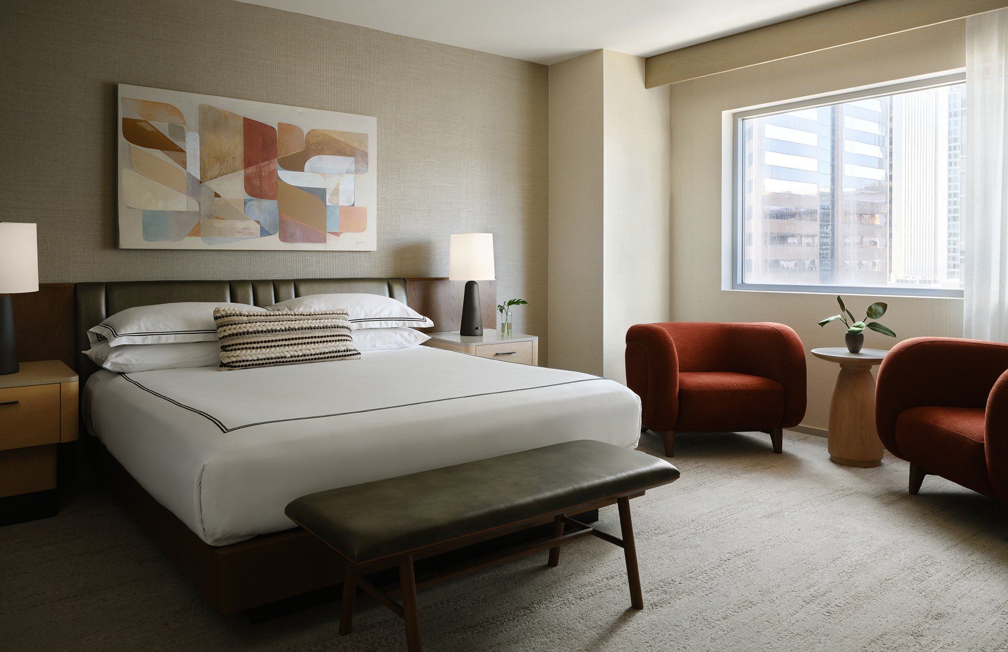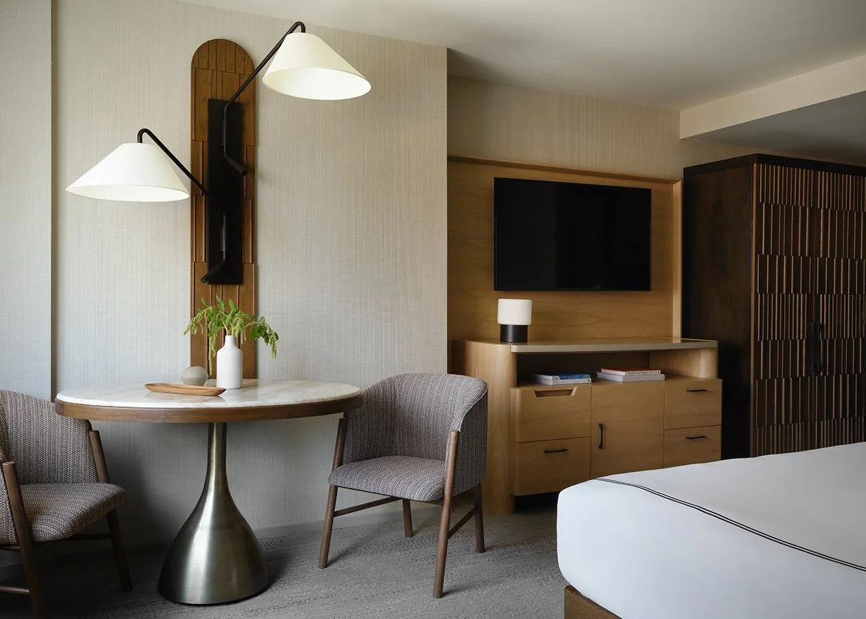 At Kimpton’s Palomar hotel in Phoenix, we led a partial guest room renovation designed to keep a beloved property current in a competitive market. Working closely with the client, we focused on impactful, strategic updates rather than a full overhaul. Drawing from the surrounding desert, we layered warm tones and tactile materials to create a calm, inviting atmosphere — timeless, balanced and built to endure.