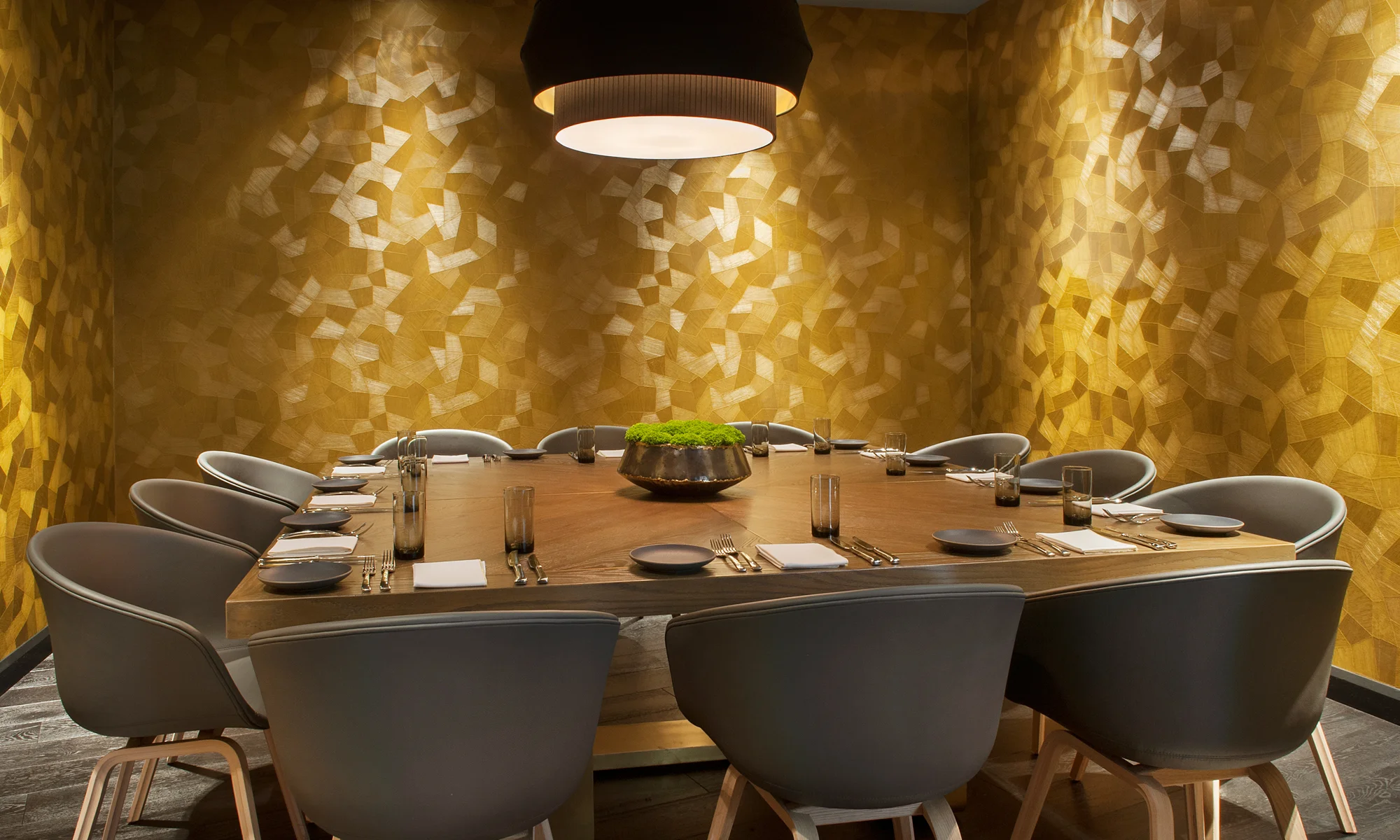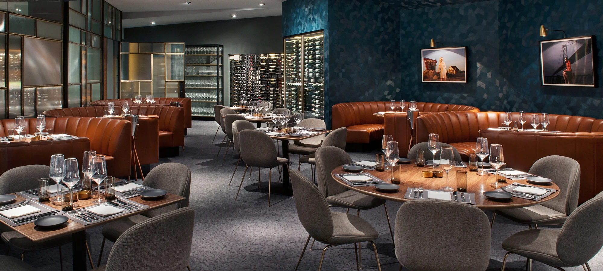 After 15 years as one of the city’s finest steakhouses, Nick + Stef’s wanted a contemporary facelift to keep up with rapidly modernizing Downtown L.A. Our challenge was to reimagine the interior while retaining its mysterious, iconic luster. The keys to our success were in the restaurant’s original angles and folds, which we used as inspiration for playful new wall coverings, patterned carpets and elegant lighting. Strong geometric metal and ribbed glass partitions were added to provide balance and privacy while reflecting light in provocative ways. The showstopper? An irresistible bar, relocated and renewed to generate the open, free-flowing feeling that is “so L.A.”